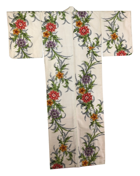 複雑なつる性植物が多色で表現されていて、美しいアールヌーボー柄銘仙です。
