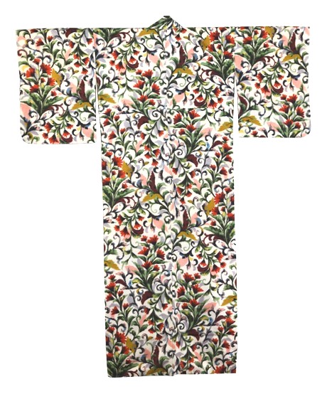 複雑なつる性植物が多色で表現されていて、美しいアールヌーボー柄銘仙です。